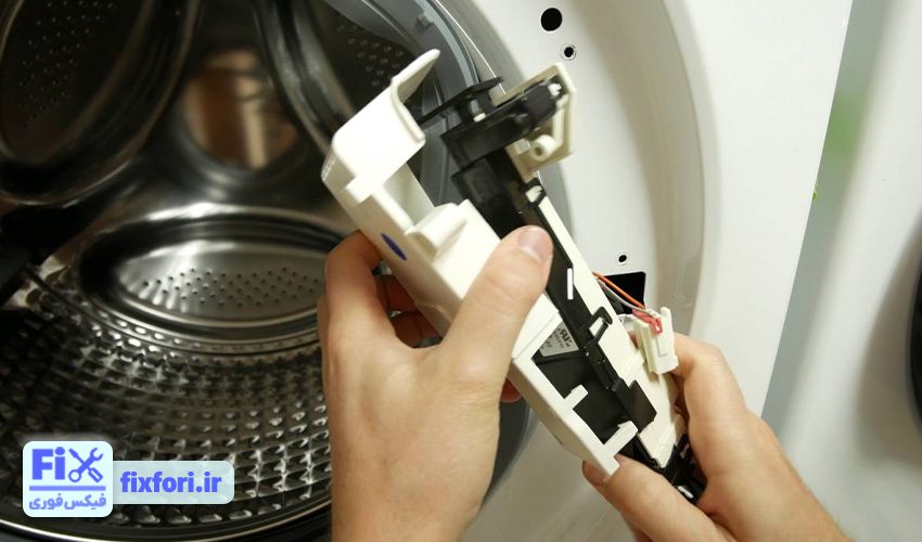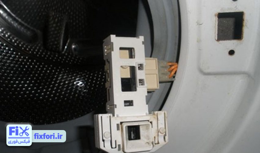 - مشکل در سوئیچ درب: سوئیچ درب، یک قطعه الکترونیکی است که به برد کنترل دستگاه اطلاع میدهد درب بسته شده است. اگر این سوئیچ خراب شود، دستگاه فکر میکند درب باز است و چرخه شستشو را متوقف میکند.