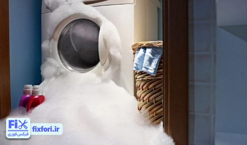 16. چرا لباسشویی ارج در حین کار کف از درب آن خارج می شود؟